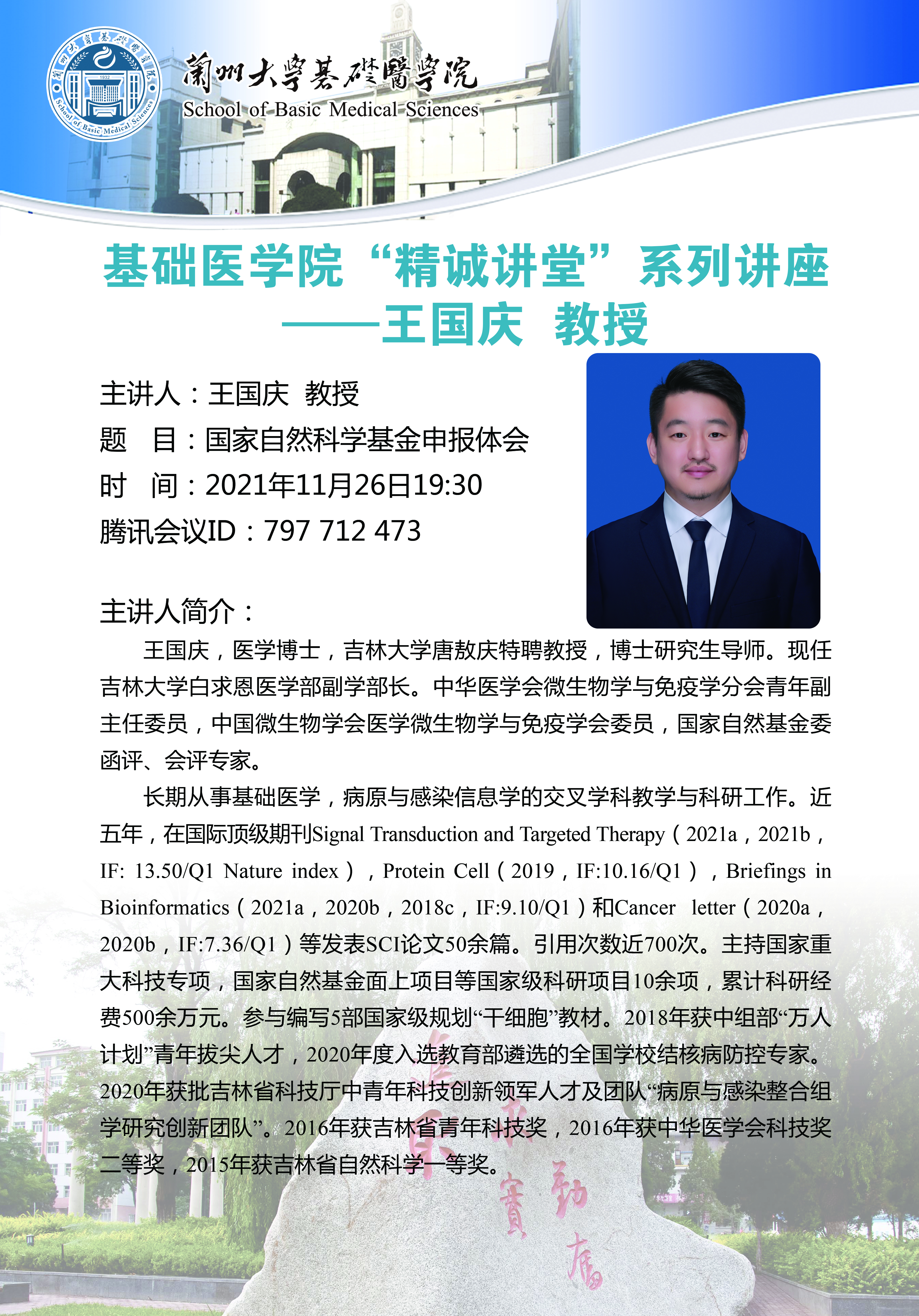 应304am永利集团官网邀请,吉林大学304am永利集团官网王国庆教授于2021年11月26日举办线上学术讲座,欢迎广大师生积极参加。